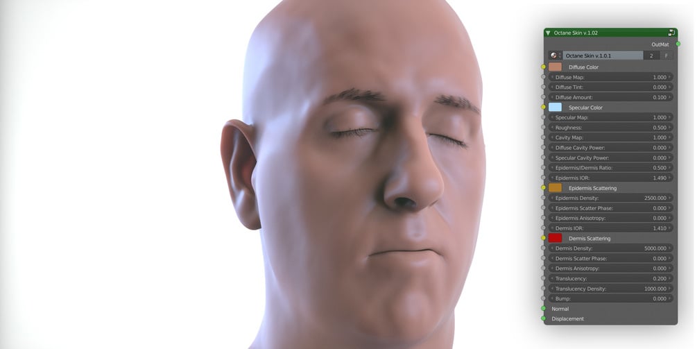 This skin shader was build to provide 3D artists with a flexible and easy to use tool, allowing them to quickly obtain realistic skins without going mad with complex nodal setup.